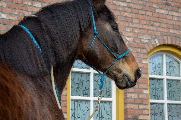Standaard touwhalster, gemaakt van 6mm dik touw. Uitgevoerd met een overhandse knoop of fiador knoop (+0,50). Onze halsters zijn door de X gevormde knopen zeer comfortabel voor het paard omdat het de druk evenredig verdeeldt. Geschikt voor onderandere grondwerk en fotoshoots.
